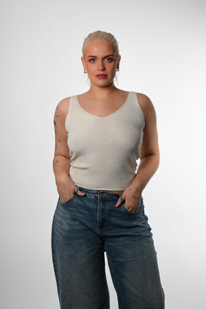 Toppur með glimmerþræði