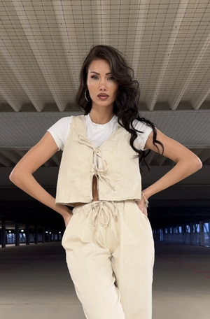 Bundið vesti sem hægt er að fá buxur við og búa til sett.